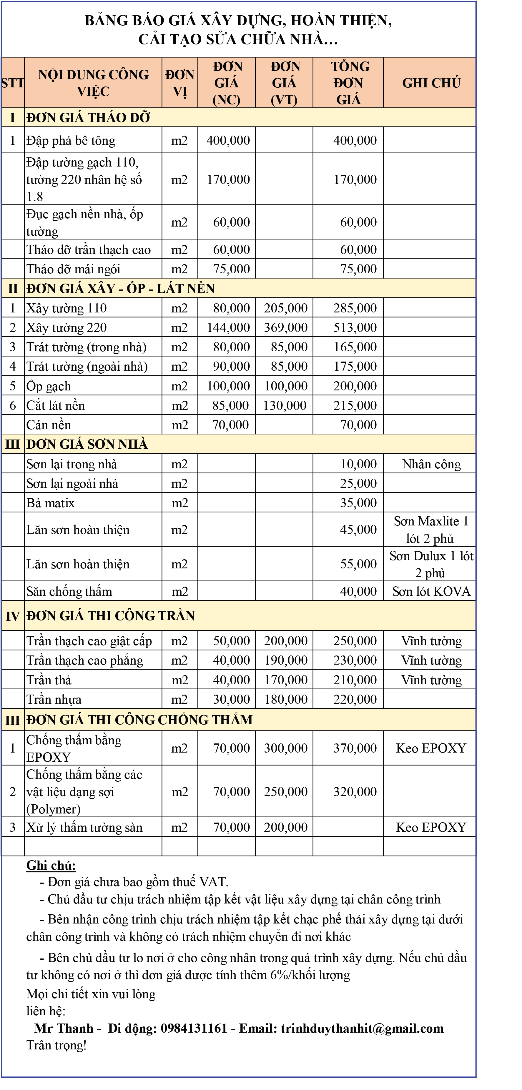 Dưới đây là báo giá của suanha365.com, quý khách hàng có thể tham khảo: